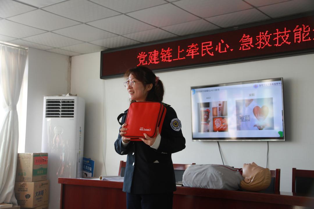 "冬季是心脑血管疾病高发期,掌握心肺复苏术可能挽救一条生命!"科教培训科专家手持扩音器,结合投影屏上的动态示意图,将复杂的急救原理拆解成通俗易懂的"救命口诀"。当讲到自动体外除颤器(AED)使用方法时,她特意带来便携式设备,邀请村民上台实操。"以前在电视里看过,今天自己动手才知道要这样贴电极片。"党员耿庆堂边操作边感叹,现场不时响起掌声和提问声。