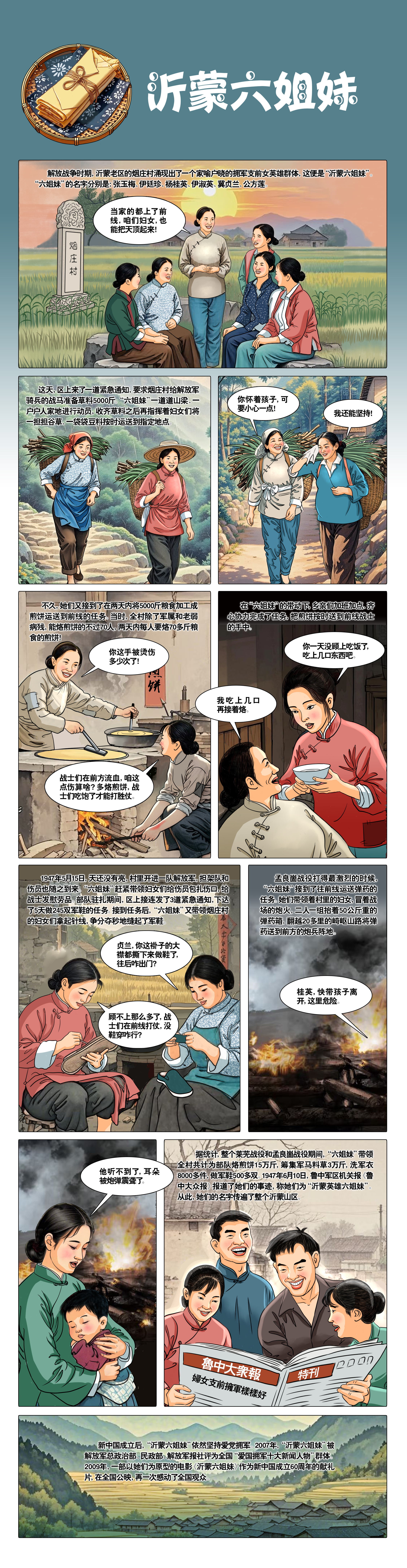 漫画里的沂蒙|沂蒙六姐妹齐鲁晚报·齐鲁壹点客户端 刘雅菲 赵艳 朱若彤 徐进 周小涵 2025-12-15 16:53:55原创策划:刘雅菲 赵艳文案:周小涵 朱若彤漫画:徐进配音:朱若彤责任编辑:朱若彤
