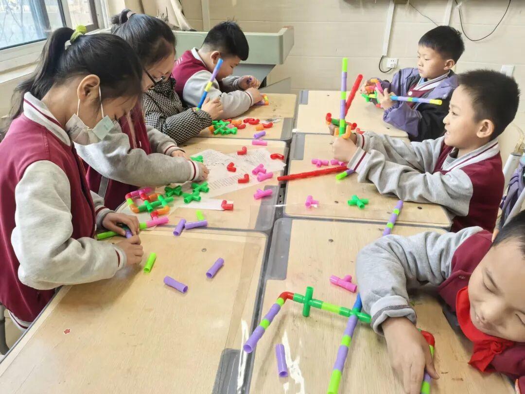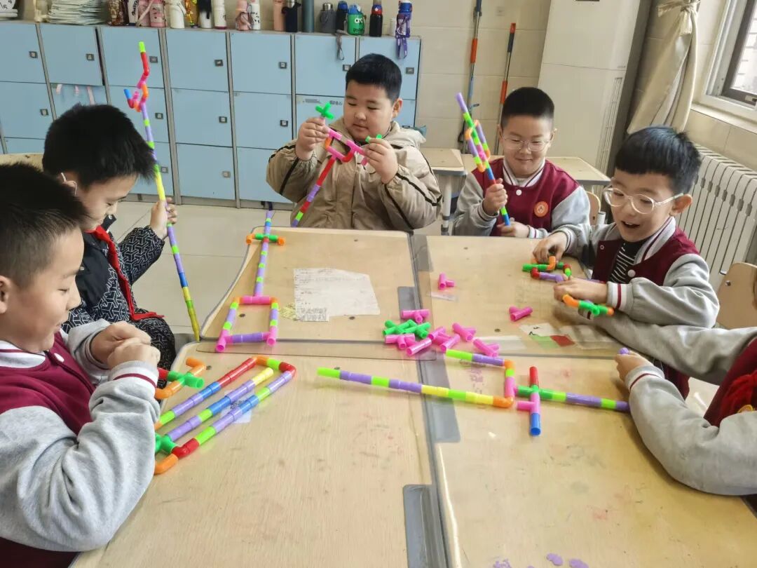积木实践活动更是点燃学生热情,彩色管道积木在桌上铺开,大家快速动手拼接组合,有的搭出高耸的“魔法棒”,有的拼出曲折的“小迷宫”,课堂上满是积木拼接的“咔嚓”声与欢快的笑声,在动手实践中锻炼了逻辑思维能力。