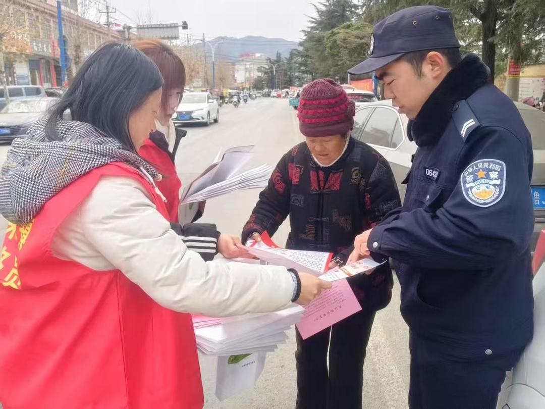 活动现场,各部门工作人员不畏严寒,热情洋溢地开展精准普法。综治办工作人员围绕平安建设、扫黑除恶等内容,耐心讲解政策法规,引导群众共建平安家园。派出所民警结合冬季治安特点,重点讲解防范电信诈骗、冬季防火防盗等知识,提醒群众捂紧“钱袋子”,守护“安全门”。司法所及法律服务所的工作人员在咨询台前,冒着寒风细致解答群众关于婚姻家庭、邻里纠纷、务工维权等方面的法律疑问,用专业的服务驱散群众心中的困惑。一份份普法资料被递到群众手中,一句句耐心解答温暖着人心,法治的暖流在寒风交汇处悄然流淌。随后,工作人员来到大街上,向过往群众递出普法宣传资料,宪法读本、反电诈指南等“法治礼包”被一一送到群众手中,接地气的普法方式赢得大家认可。