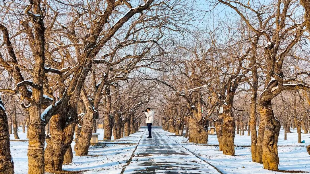 12月13日山东省乐陵市迎来入冬以来的第一场雪落雪后的乐陵影视城千年枣林等各大景区银装素裹浪漫静谧美不胜收落雪后的乐陵影视城银装素裹游客在山东省乐陵影视城雪景中打卡拍照摄影爱好者在山东省乐陵市千年枣树森林公园拍摄雪景市民在山东省乐陵市玉心湖公园迎雪晨练大众新闻通讯员贾鹏记者徐付彪