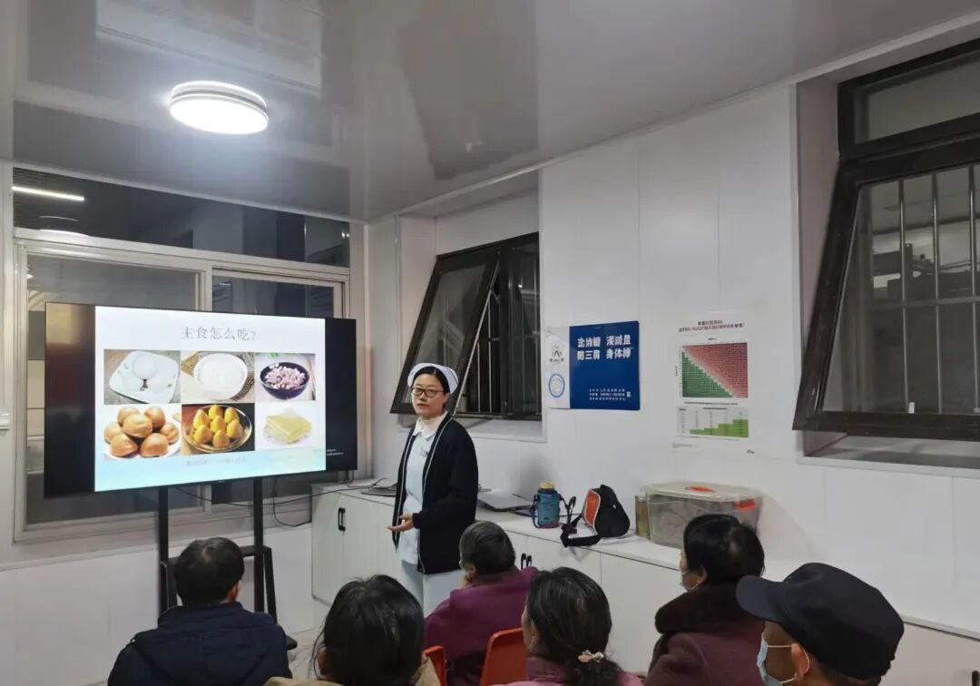 为让居民直观掌握饮食搭配方法,孙琳琳系统讲解“计算理想体重→估算每日总热量→分配食物交换份”每日饮食“3步曲”:并结合具体案例演示了如何根据身高、体重、劳动强度制定个性化饮食方案。她还科普食物血糖生成指数(GI)概念,指导糖尿病患者应尽量选择GI低的主食,针对大家最关注的“吃什么主食最好?”“糖友如何吃水果?”等问题,逐一回答并科学指导。