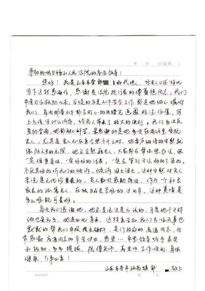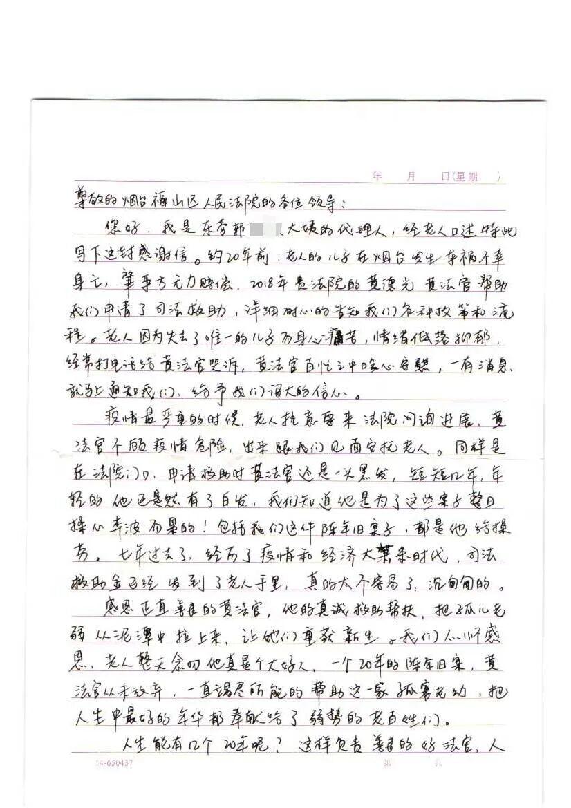 对于干警们的“应该”,她在感谢信里这样写道:“对于我反复的咨询,她们总是耐心地解答,最感谢她们无数次在电话里安抚我,给我生的希望。每次我感谢她们,她们都说这是‘应该的’,可是她们不这样也是‘应该的’,她们是如此善良……”