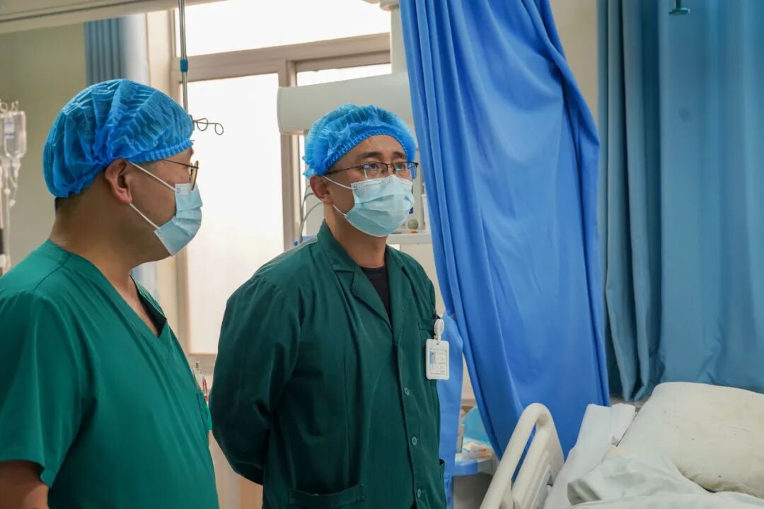 进行消毒、铺巾,置入中空导管及气管套管……在科主任刘光河的现场指导与其他医护人员的配合下,仅用38秒便顺利完成置管。