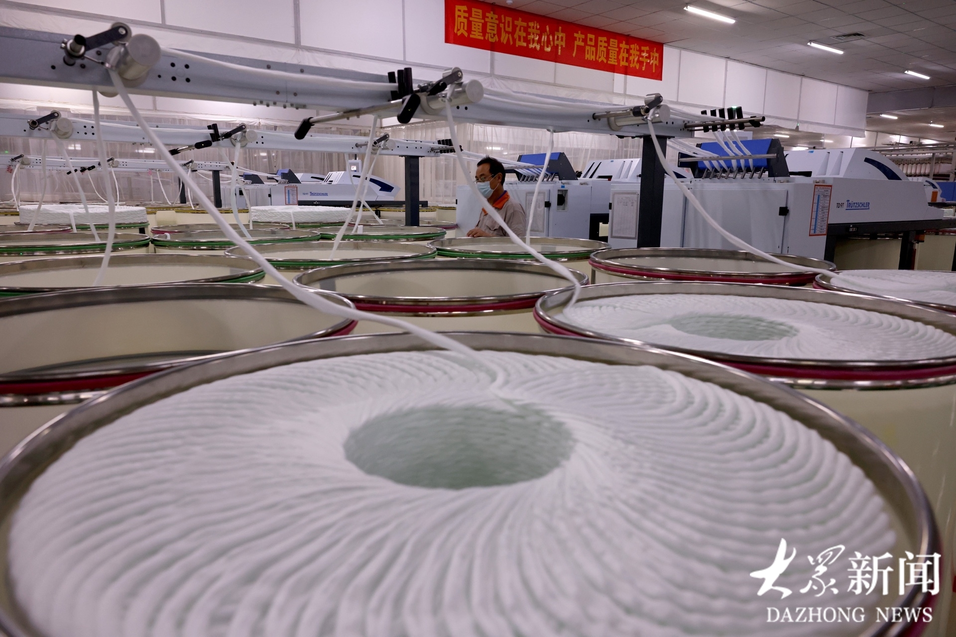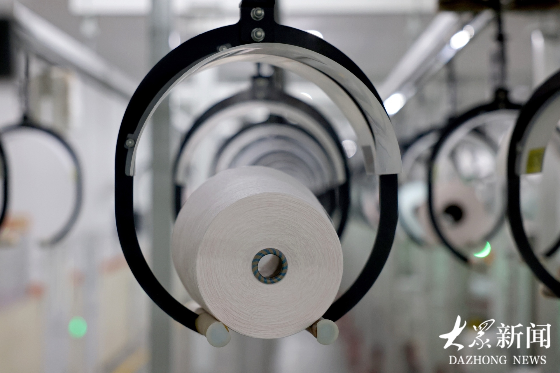 12月14日,在枣庄经济开发区一家纺织企业无人车间,智能化生产线在加工高端纱线。