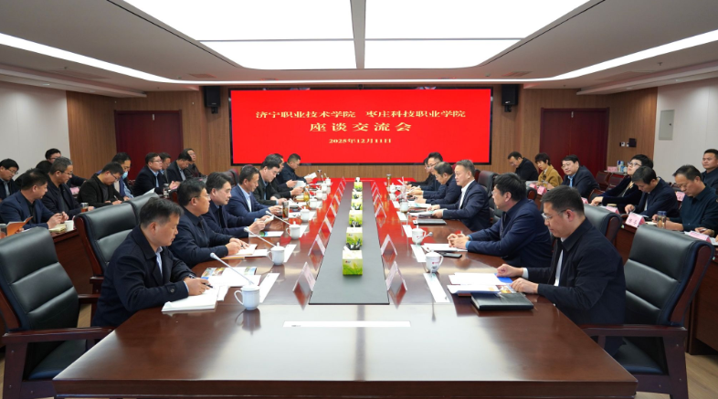 12月11日下午,枣庄科技职业学院党委书记谢宝华、院长闵祥寨一行到访济宁职业技术学院,开展考察交流活动。