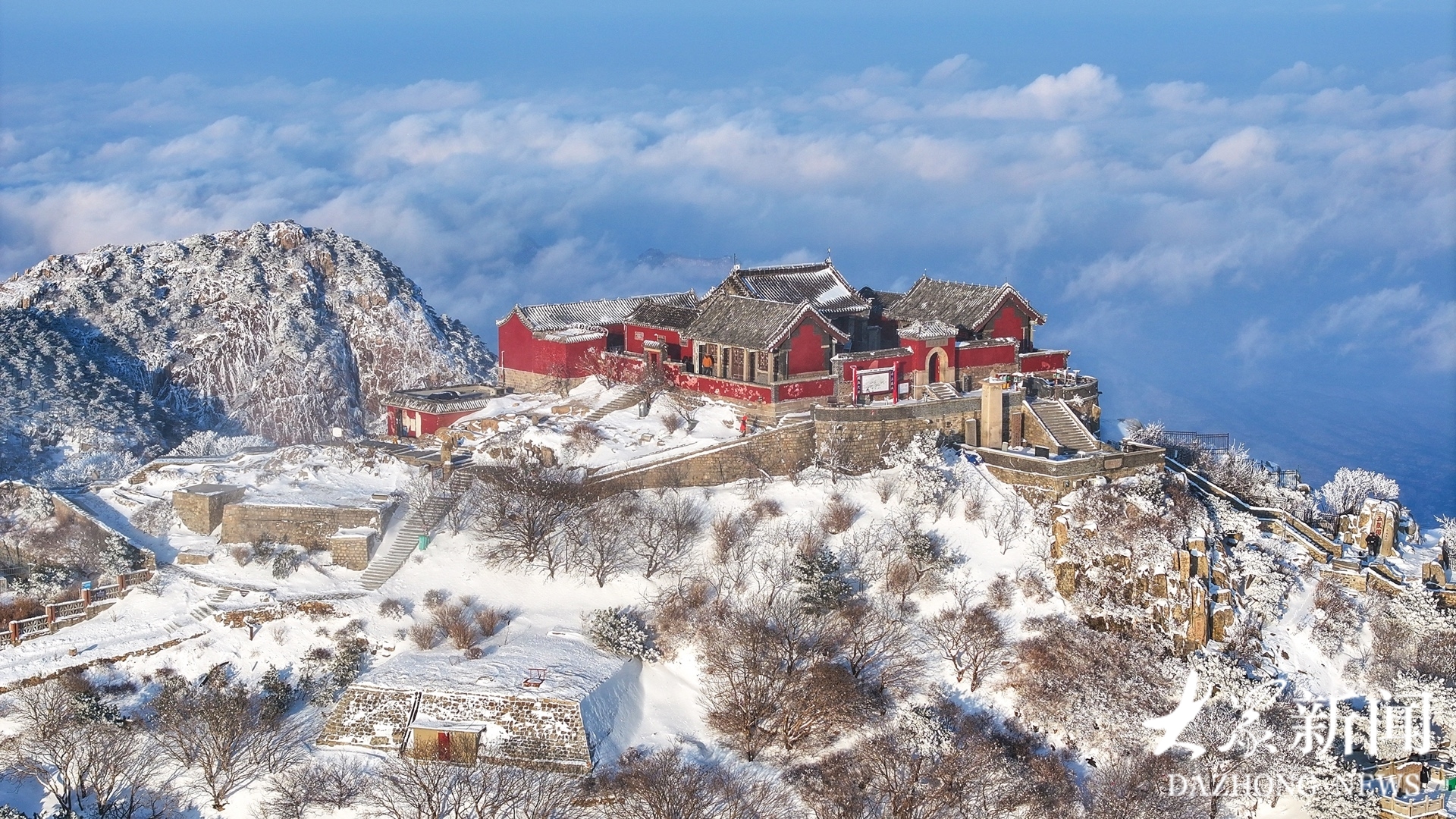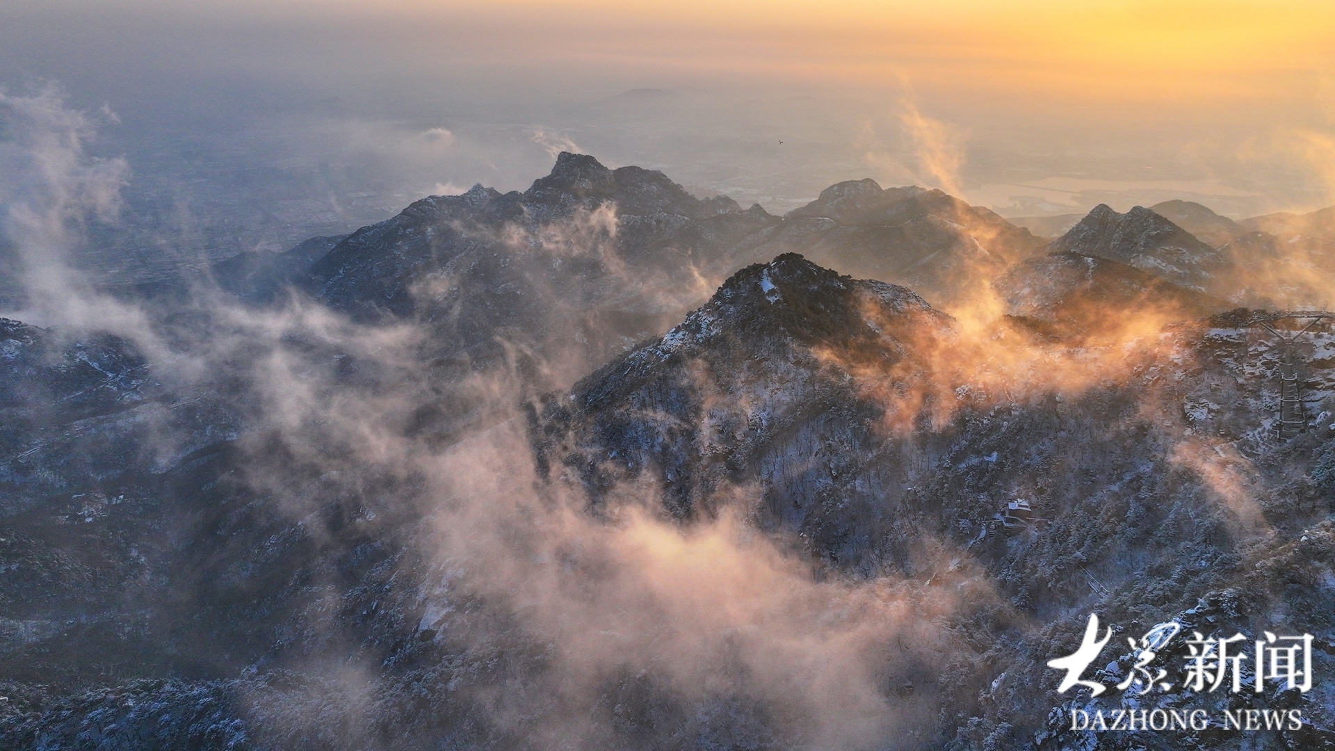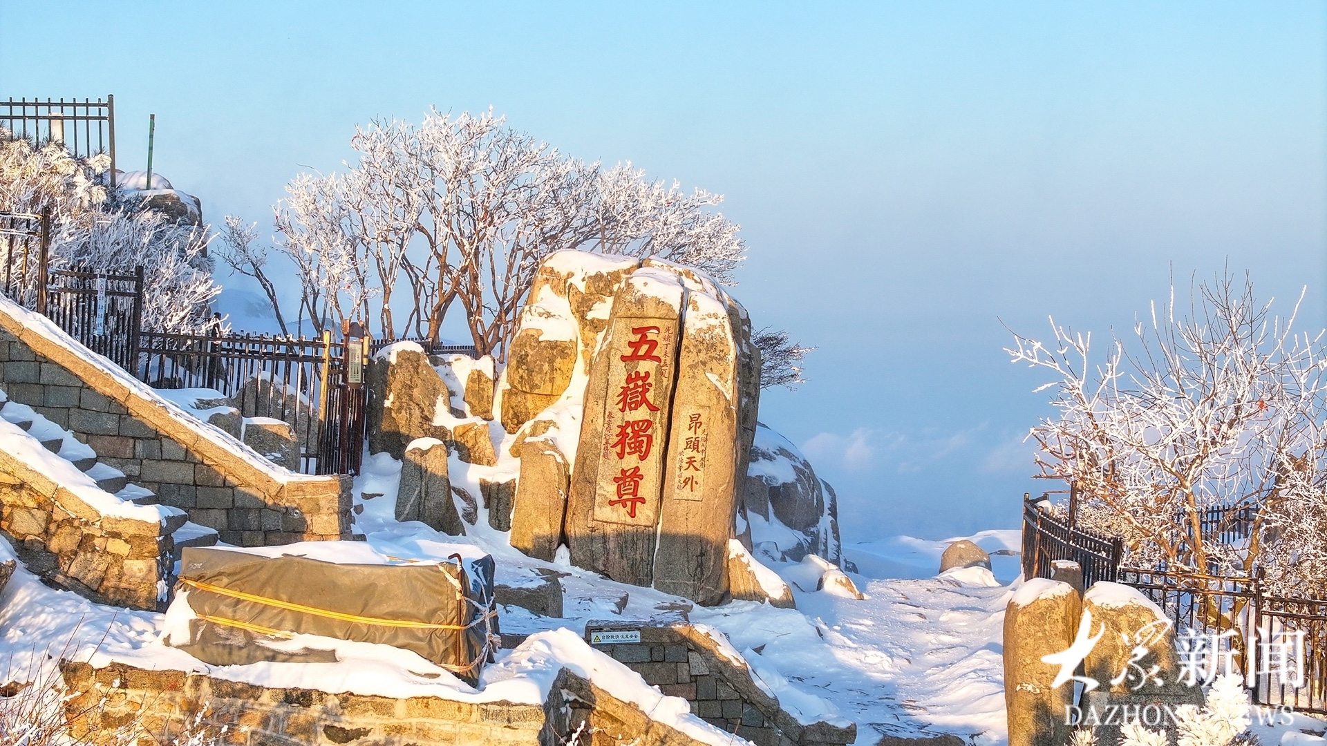 12月14日齐鲁大地雪后初晴泰山雄浑壮美金色阳光漫撒山峰白雪皑皑观日游客雪中古建崎岖山路相互映衬影色交融典雅壮丽构成一幅幅优美画卷大众新闻通讯员李建辉