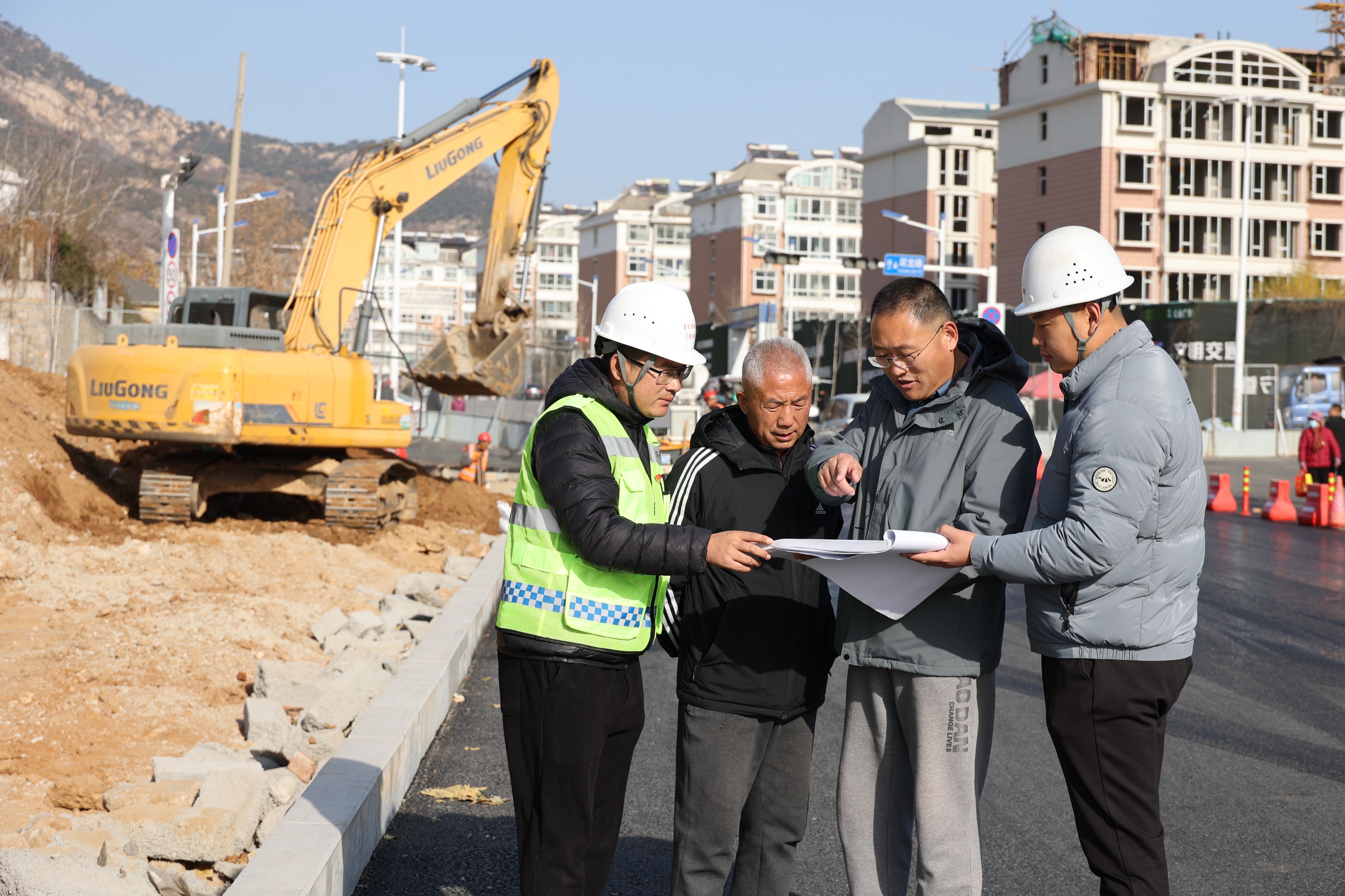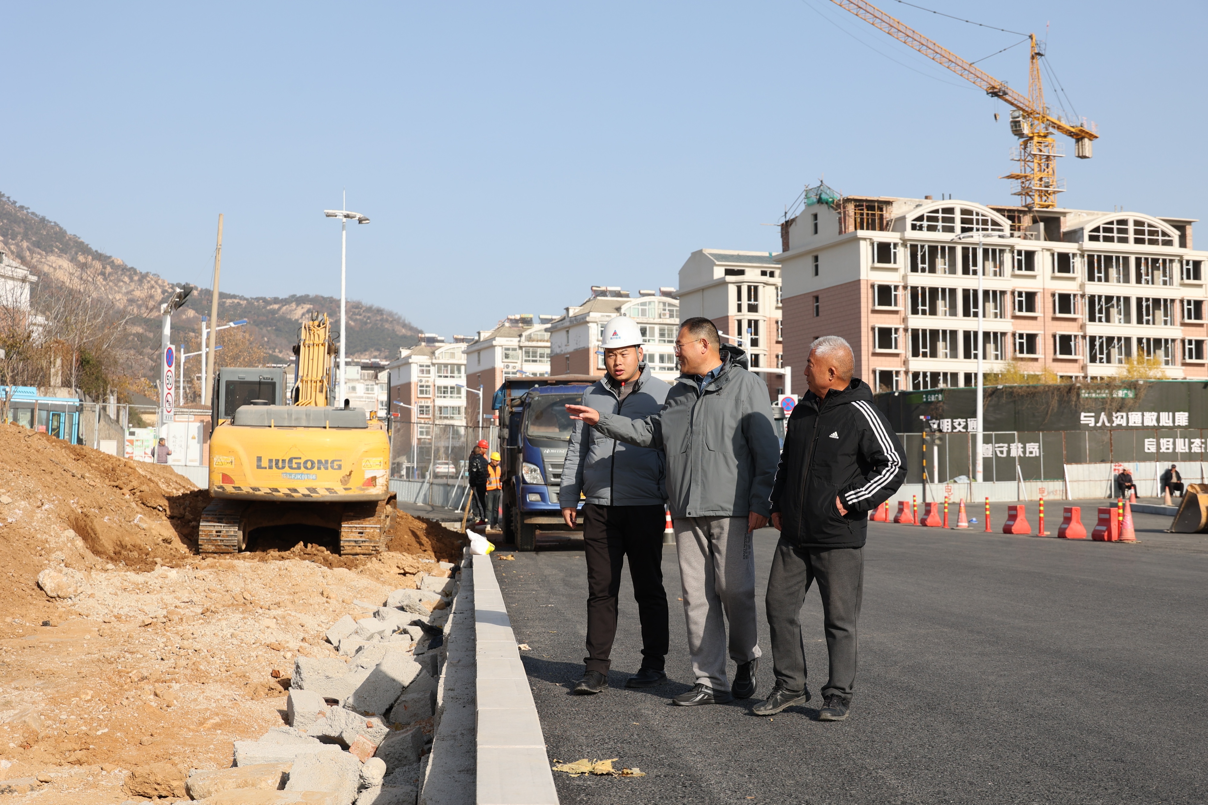 伴随着施工设备的轰鸣,李文在施工现场,细致查看道路施工质量。作为泰安市住建系统一名重点工程建设者,多年来,李文以脚步丈量城市,用责任书写担当,将青春岁月融入城市发展的肌理。