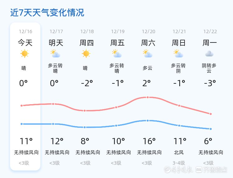 未来三天,临沂市天气以晴到多云为主,温度变化幅度较大,最低气温将降至-2℃,最高气温可达12℃。预计周四(12月18日)气温较低,早晚出行需特别注意保暖。周五至周日,天气以多云为主,偶有阴云,气温逐渐回升,市民需根据天气变化及时调整衣物。