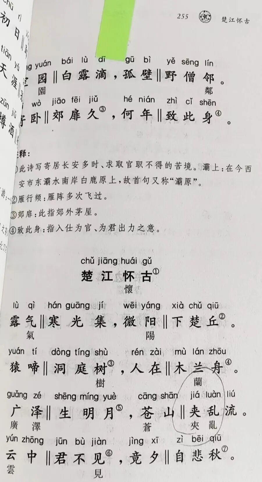 该版《唐诗三百首》是“中华经典诵读”丛书之一种,2012年第1次印刷。当时听取一线老师根据教学要求所提出的建议,我们在原诗的正文下面标出了对应的繁体字。因为需要重新倒版和简繁转换,致使出现了一些讹误,后来每次重印时虽也做过零星修订,但都不彻底。盛大林先生指出的“夹”误作“涛”,系改稿时全书替换操作失误所致;“里”误作“裏”、“大历”误作“大歷”等,系简繁直接转换造成。
