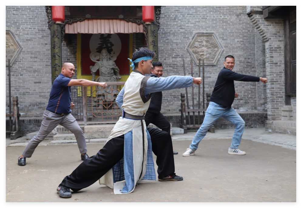 漫步景区,青砖黛瓦的忠义亭、古朴肃穆的忠义祠、格局精巧的古建院落、威严庄重的旧时县衙,一组组元明清风格的古建筑群让越南友人目不暇接。他们紧随导游脚步,聆听建筑背后的文化渊源,在飞檐斗拱间感受中国古代建筑的匠心独运。当看到师傅将重达百斤的状元大刀舞得虎虎生风,黎金胜、阮文勇、阮文塔等友人按捺不住好奇与敬佩,纷纷登台尝试,亲身感受中国武术的力量与韵味。“中国师傅太有力量了,佩服!”阮文勇竖起大拇指由衷赞叹,特意手扶大刀记录下这难忘的体验。