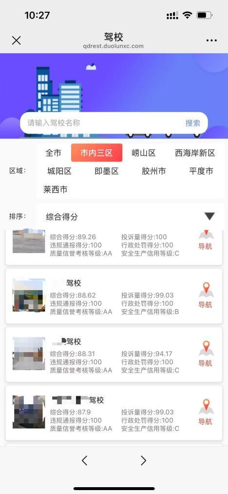 四是打造“驾校公益地图”,破解市民择校“选择难”。 为解决市民择驾信息不对称难题,积极拓展信用评价结果场景应用,联合高德地图打造了全域覆盖的“青岛青学驾驾校地图”。市民只需打开地图APP搜索“驾校”,即可查看全市所有合规驾校的位置、联系方式、实景照片等信息,实现“一键查找、一键导航”。这项服务将选择权完全交还市民,用阳光透明的信息引导驾校公平竞争、优化服务,推动行业从“价格战”转向“质量战”。