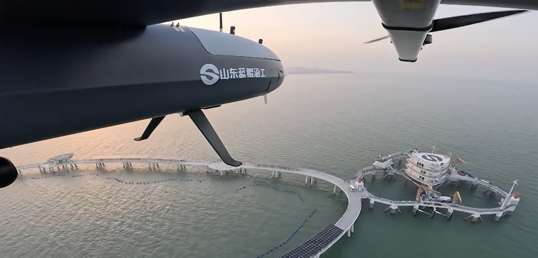 随着起航指令正式下达,工作人员将装载快件的标准货箱精准安置于无人机货架,无人机随即平稳起飞,按预设航线完成海上配送作业。此次测试所用无人机飞行高度达350米,载重能力为30公斤,可适配对应规格的物流货箱,满足海上应急物资运输的基础需求。