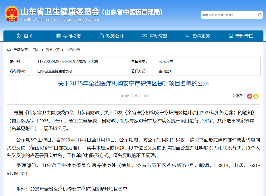 近日,山东省卫生健康委下发文件,泰安市中心医院凭借扎实的安宁疗护服务基础、规范的病区管理体系以及突出的专业服务能力,成功入选2025年全省医疗机构安宁疗护病区提升项目,标志着泰安市安宁疗护工作迈入省级规范化建设新阶段。