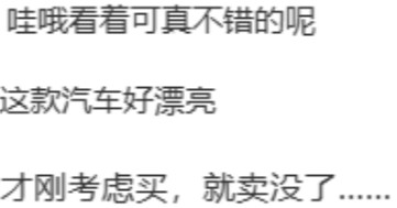 有些网友表示,因其车型颜值选择购入,也会为没抢到而感到遗憾。