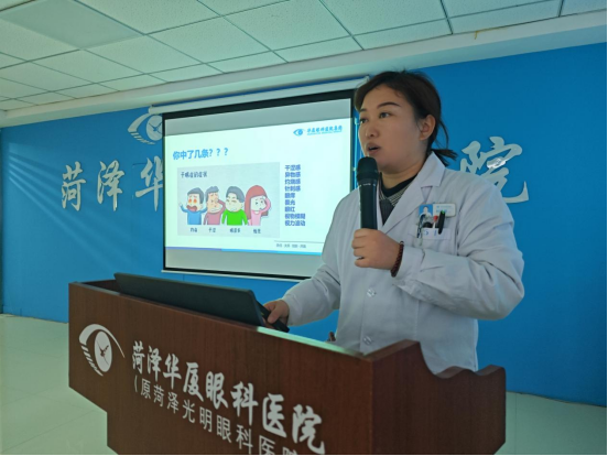 12月15日,菏泽华厦眼科医院干眼开放日活动温情启幕,十余位老年朋友齐聚一堂,共同解锁干眼症防治的实用知识。活动现场,医院眼表与干眼科刘晓丽主任凭借丰富的临床经验,用通俗易懂的语言为老年朋友们带来了一场干货满满的科普分享,从干眼症的发病原因到科学应对方案,再到容易被忽视的螨虫性睑缘炎,每一个知识点都紧扣老年群体的眼部健康需求。