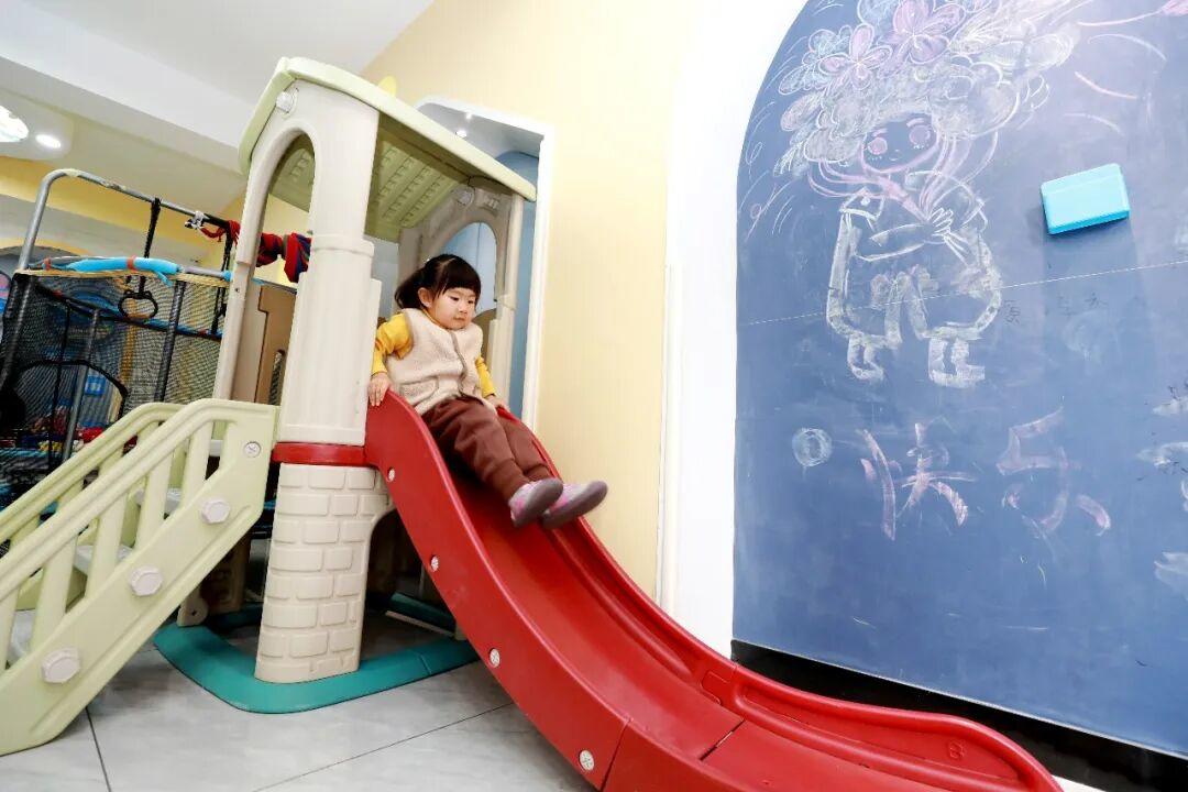 所谓社区嵌入式托育,即通过盘活社区公共空间嵌入托育设施,为0-3岁婴幼儿提供全日托、半日托、计时托、临时托等多样化照护服务。走进和兴社区托育点,铺满软垫的活动区、分类清晰的游乐设施、色彩明快的功能分区映入眼帘,温馨童趣的环境让孩子们得以在安全舒适的氛围中活动。