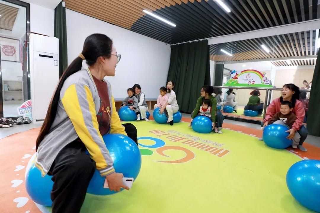 专业师资是服务的核心支撑。在托育课堂上,“彩虹积木”教会孩子认知颜色形状,“感官瓶”帮助锻炼专注力,彩虹隧道爬行、彩色圈圈跳跃等游戏则让孩子们在玩乐中提升肢体协调性。“0-3岁是感统发育关键期,我们的课程全部围绕孩子的成长特点设计,让学习融于游戏。”幼师王婷玉一边引导孩子搭积木,一边解释。