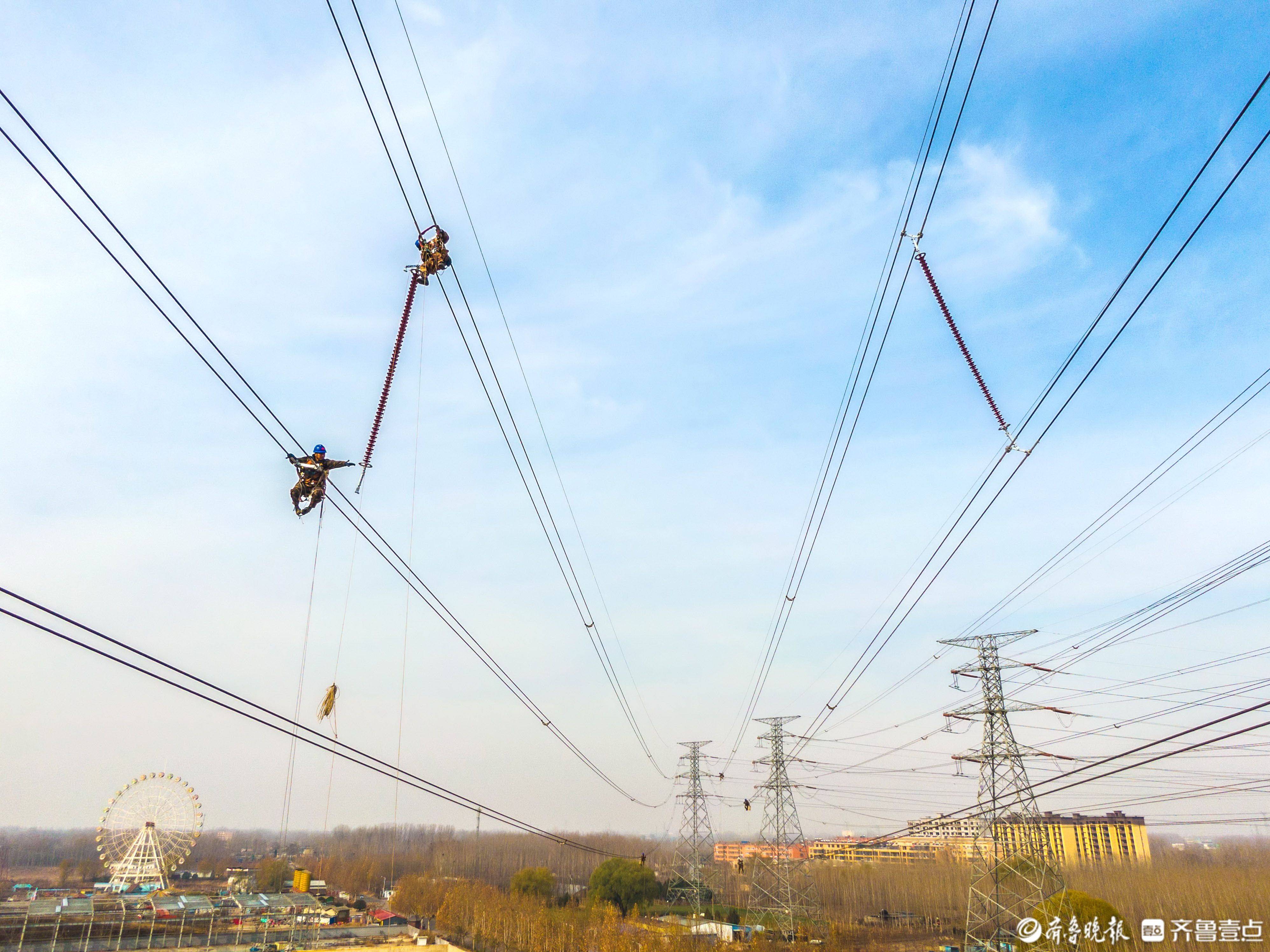 “线路覆冰会遇风舞动,加装相间间隔棒能有效抑制舞动,避免导线脱冰跳跃。”国网枣庄供电公司运检部主任张建华介绍说,枣庄供电公司负责枣庄电网输电线路3428千米和枣庄境内14条超高压和特高压线路共535千米的属地运维任务,加之枣庄地处鲁南丘陵,北来冷空气与南来暖湿气流在此爬坡交汇,极端天气条件下曾有冻雨发生。