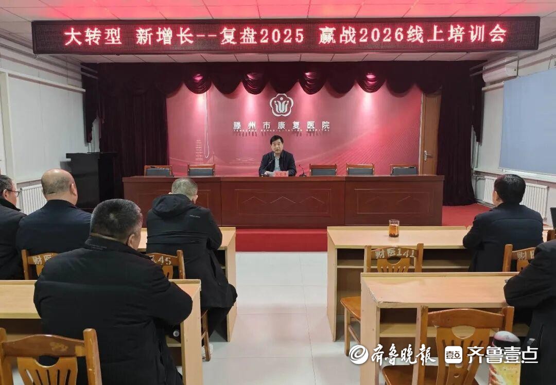 为推动医院在新一年把握发展机遇,提升运营管理水平,12月13日,滕州市康复医院组织全院中层以上干部及运营管理人员,集中观看学习了 “2026年医院转型增长线上培训会议”。院党委书记王长青同志主持会议并作动员讲话。