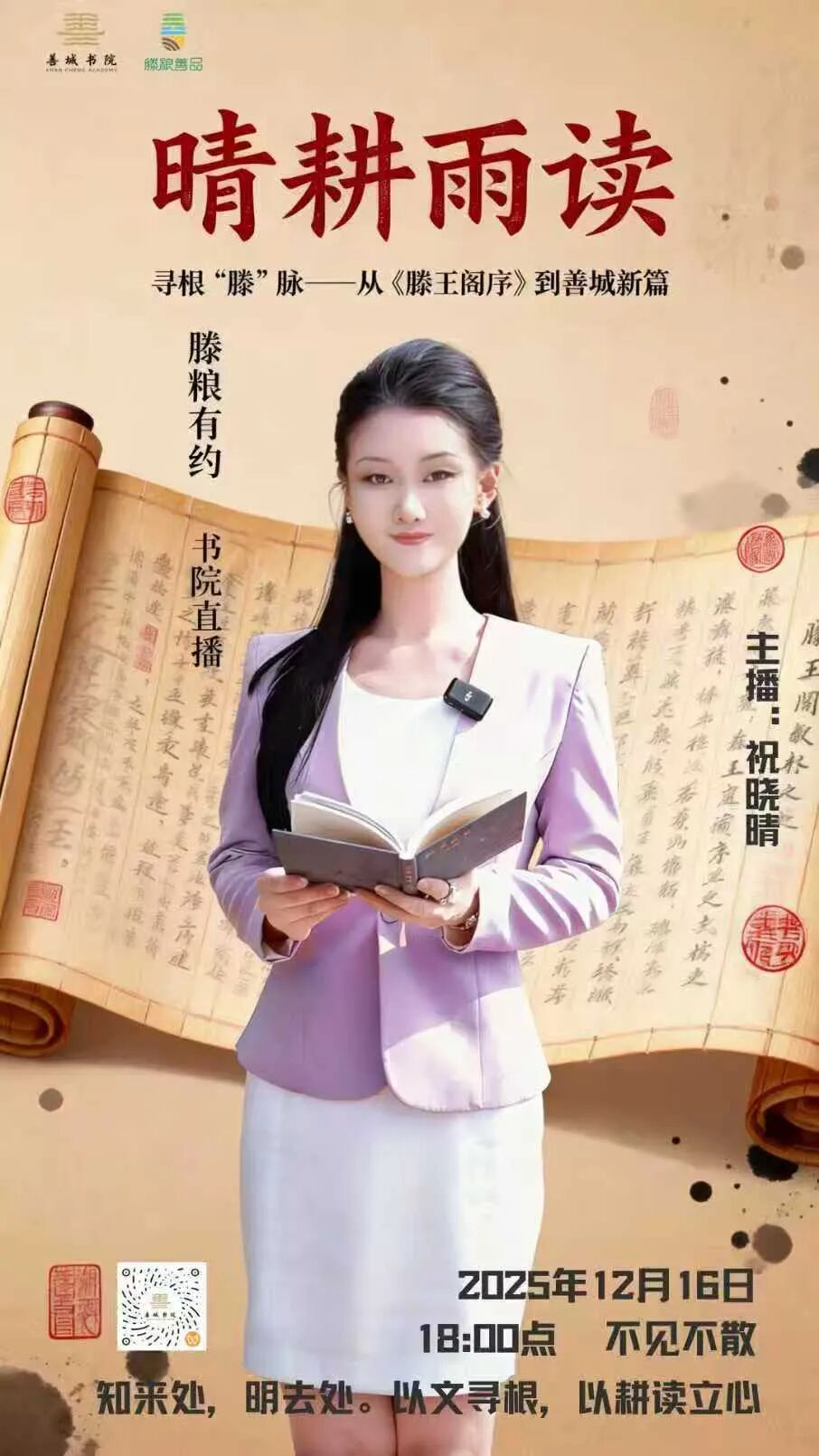 【直播预告】寻根“滕”脉——从《滕王阁序》到善城新篇大众报业·齐鲁壹点 2025-12-16 13:31:19百代仓场晴耕沃野厚土深培善国脉一城文府雨读明窗清流广浚圣贤心寻根滕脉晴耕雨读12月16日晚6点直播与你相见 责任编辑:林佩瑶