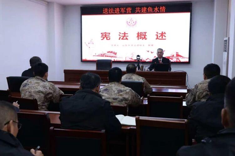 活动现场,行政审判庭普法干警、山东大学法律硕士郝晖结合自身专业优势,深入浅出、旁征博引,系统生动地阐述我国的宪法制度和宪法实践,引导官兵深刻理解宪法作为国家根本大法的核心地位,进一步筑牢宪法信仰、增强法治观念,自觉做宪法的忠实崇尚者、自觉遵守者和坚定捍卫者。