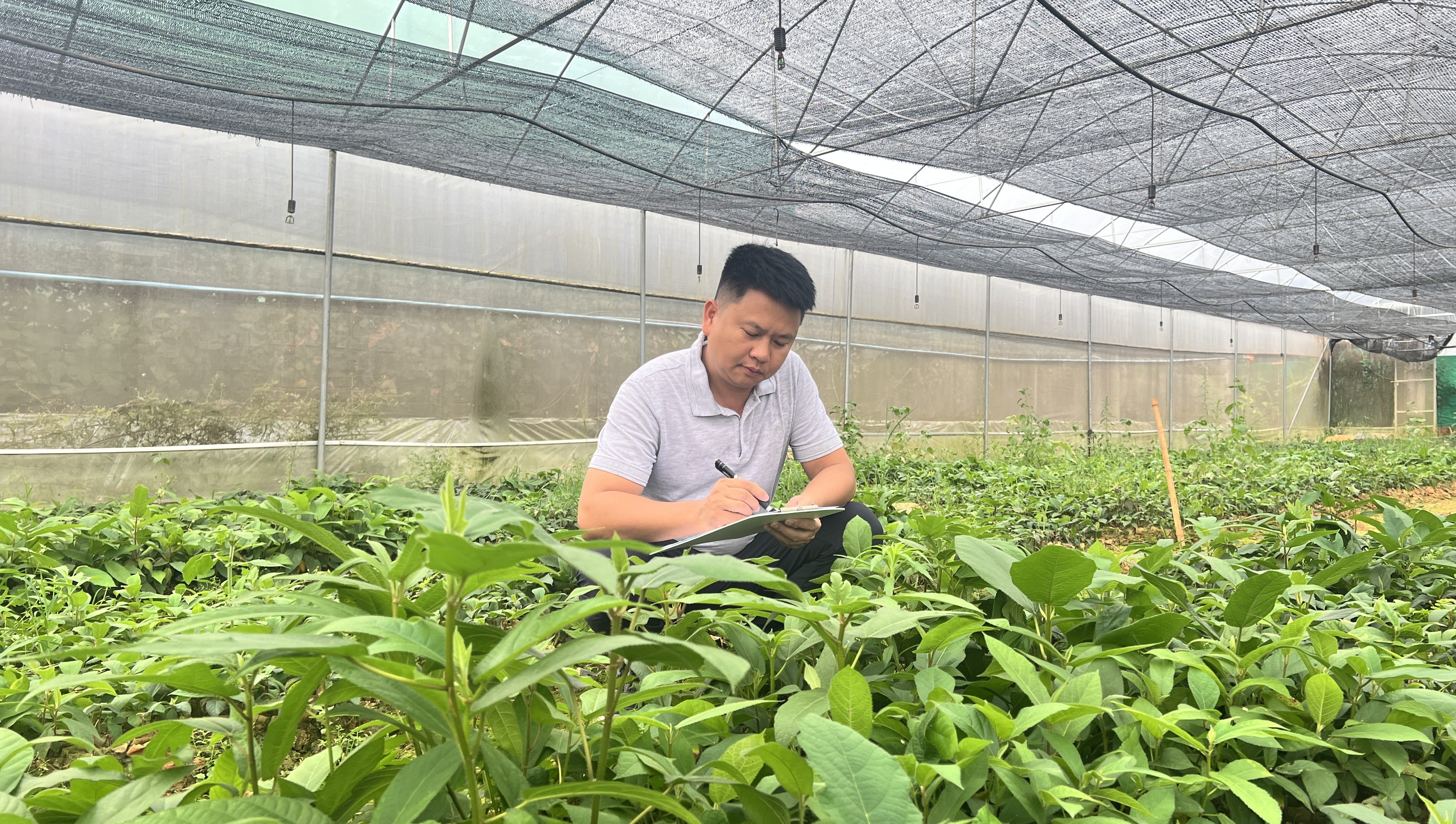 图:黄良强深入古池育苗基地对瑶药种苗生长状态进行记录