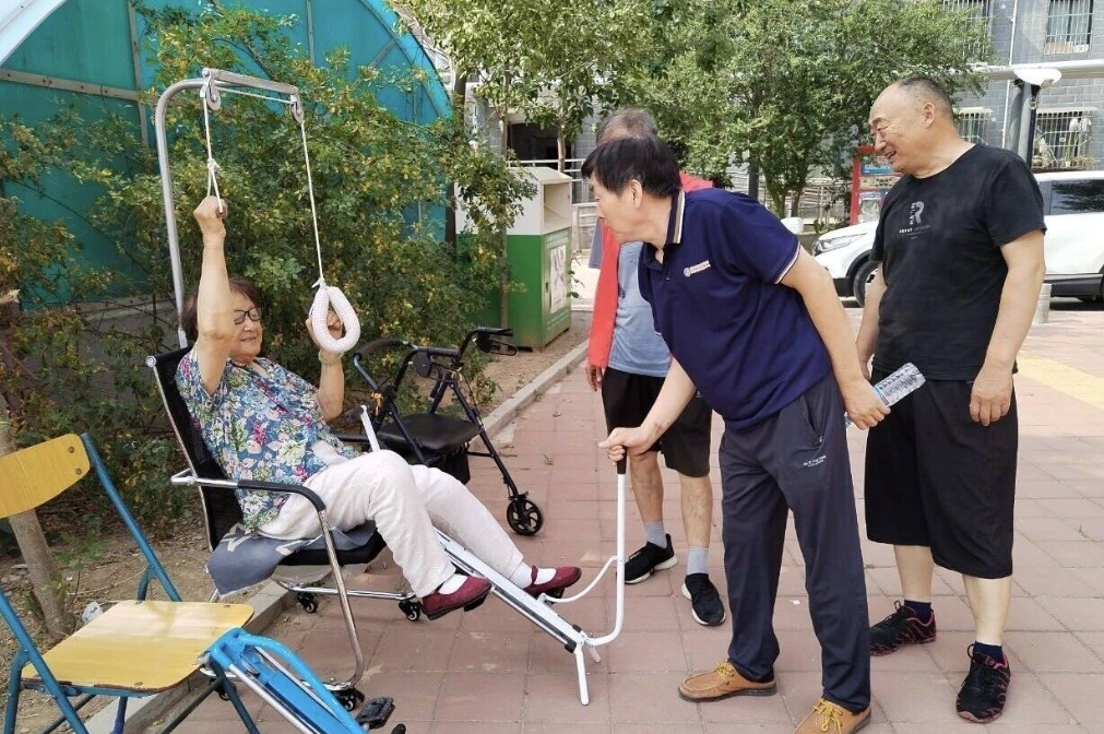 而智慧养老不仅在于“无微不至”的照护,更激发了社区互助的暖流。在营市街街道综合养老服务中心,倪玉勇带领的“爱心发明志愿团队”备受老人欢迎。尼龙绳、千斤顶、轴承等常见物件,经他们巧手改造,变成下肢活动训练器、行走训练器、背部按摩器等“助老康复神器”,贴心地解决着老人的实际困难。这支2023年3月正式组建的团队,成员来自各行各业,如今已活跃在槐荫各个社区。