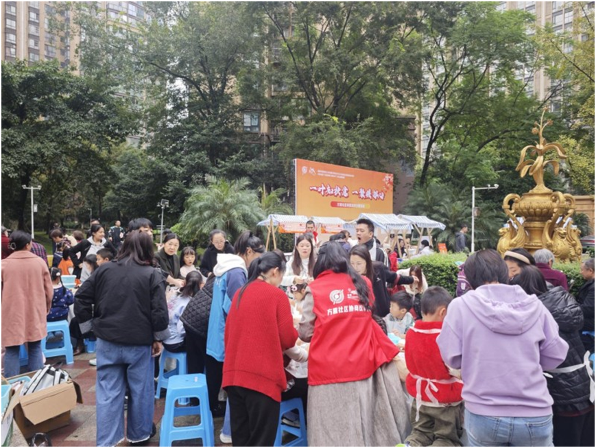 方营社区以集市为纽带,打破行业壁垒,整合辖区优质资源,由成都市新都区第三人民医院、太平社区卫生服务中心、荣泰堂中医馆组成“医疗联盟”,为居民提供免费血压血糖检测、中医问诊等服务;牙博士口腔、璟睿康和宠物医院开设“健康专区”,延伸至宠物义诊、口腔保健科普等特色服务。四川北新律师事务所设立“法律咨询台”,围绕遗产继承、物业纠纷等热点问题现场解答咨询50余次,助力社区矛盾化解率提升40%。成都地铁运营公司一公司、成都银行新都花都大道支行等企业推出“地铁卡办理进社区”“反诈知识课堂”等服务;京东五星电器提供家电以旧换新补贴。方营“Ta力量”团队开设气球制作、扎染等服务,吸引亲子家庭、老年群体广泛参与。