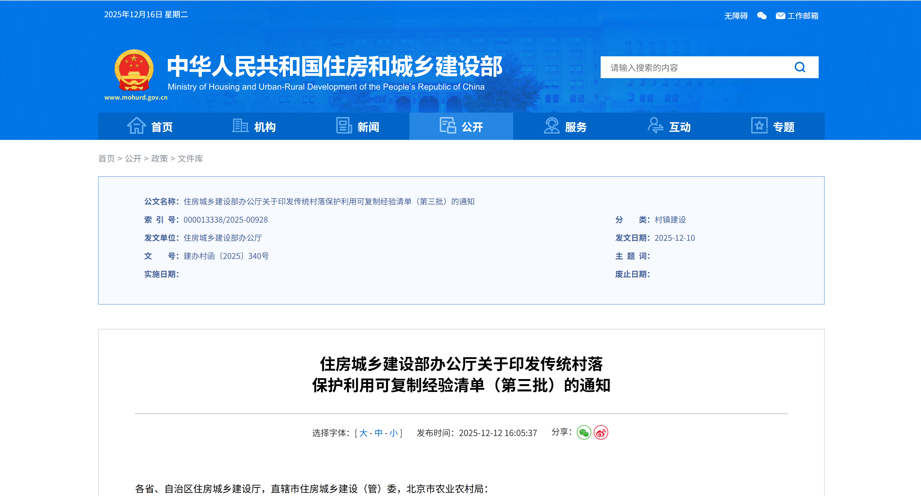 健全传统村落保护制度方面,山东制定传统村落保护政策,2025年,山东省住房和城乡建设厅等5部门印发《关于加强传统村落保护和发展的实施意见》,从加强传统村落调查建档、科学开展规划设计、推进村落整体保护发展等多方面,明确工作要求,制定保障措施,为全省传统村落保护发展提供政策支撑。