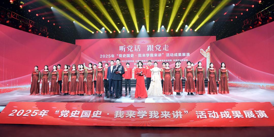 12月14日下午,省关工委、省教育厅、省委党史研究院、团省委在山东教育电视台联合举办2025年“党史国史·我来学我来讲”活动成果展演。本次展演以“听党话、跟党走”为主题,来自潍坊聋哑学校、东营市悦来湖小学、金乡县实验小学、沂源县教体局、烟台大学等单位的优秀作品进行现场展演。