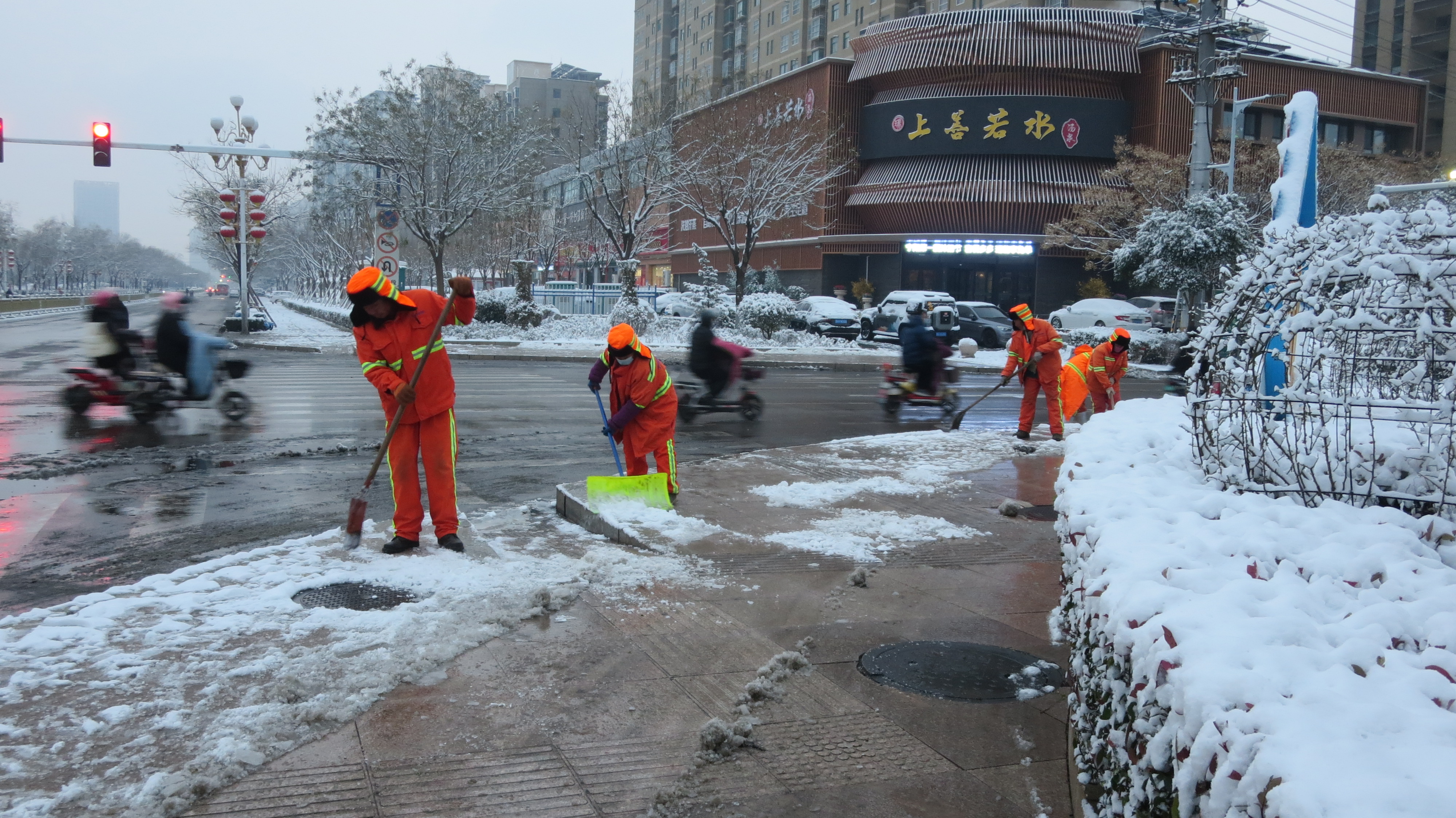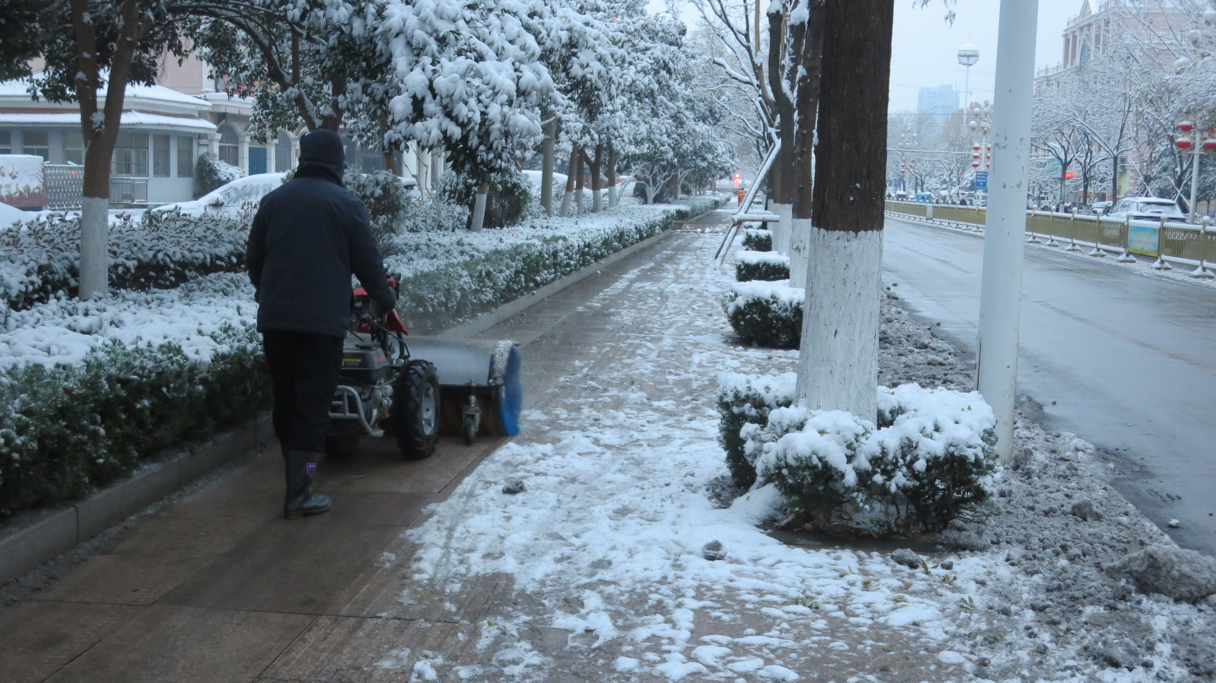 2025年12月12日夜宁阳大地降下了小到中雪宁阳环卫工人不怕严寒坚持清理积雪保障市民出行安全宁阳县葛石镇石集小学张虎拍摄