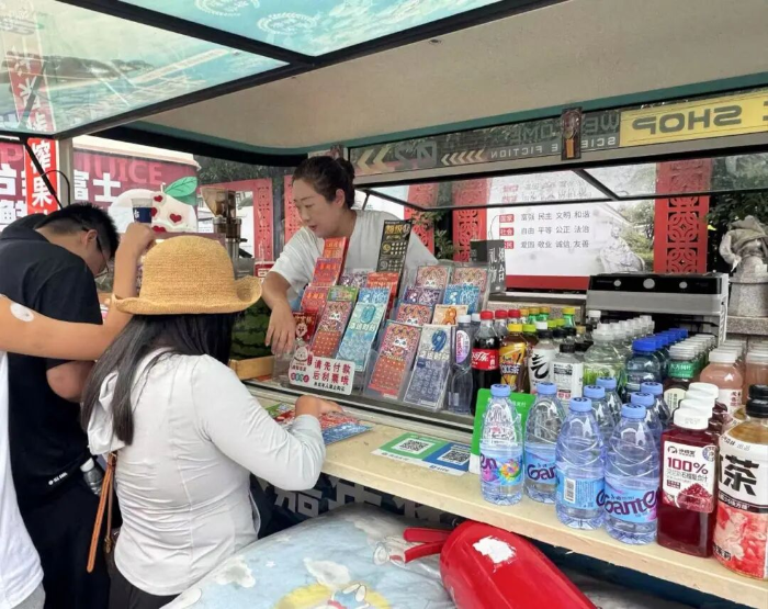 作为福彩销售网点,这座小亭子自然也承载着人们对幸运的期待。常有顾客在此购得彩票中奖后,兴奋地欢呼雀跃。然而,比起这些短暂的喜悦,更让孙艳妮感动的是日常里“平凡的温暖”。下雨天,路过的陌生人主动撑起伞帮她挡雨;忙碌时,游客自发帮忙看店;还有人悄悄留下一张小纸条,写着感谢的话……这些细碎的善意,都被她悄悄藏在心里,成了最温暖的记忆。