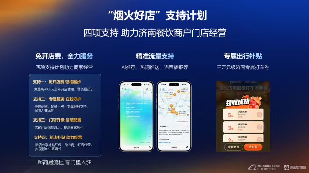 即日起,新入驻高德的商户即可享四大基础权益:免最高4800元首年开店费、一对一专属服务、门店信息优化升级及新店专属补贴红包。在此基础上,高德围绕门店经营全周期构建了完整的成长助力体系: