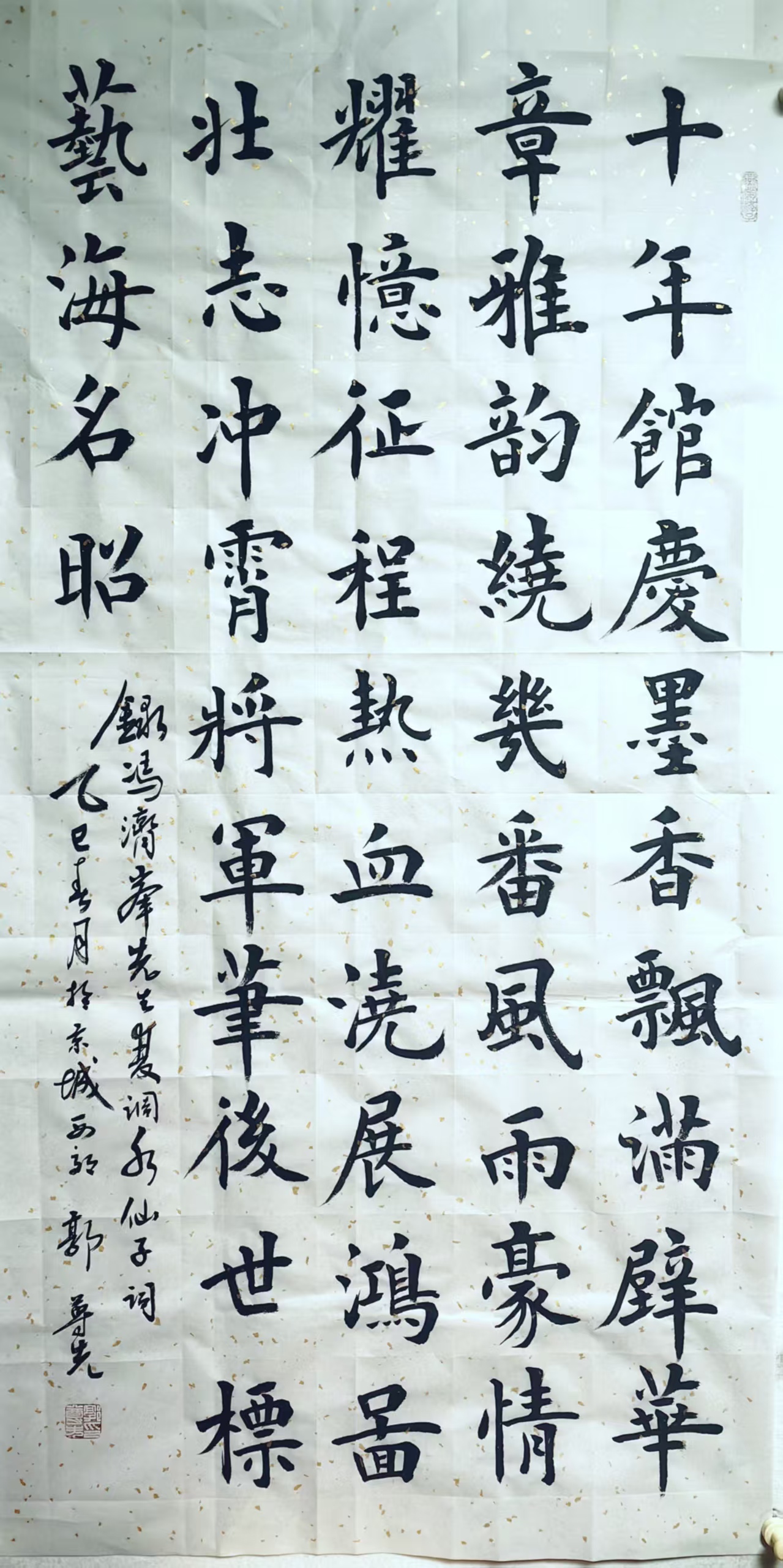 幼承家学,浸润唐法,以欧楷见长。他的作品清新隽秀,笔力遒劲,古意盎然之感力透纸背。既遵循传统,又不拘泥古人,形成了自己独特的书法风格。其书法作品入选国家、军队展览;应邀参加中日、中韩书法交流展览。其艺术成就在新华网、《光明日报》、《解放军报》、《解放军画报》、《空军报》和《中华英才》、《北京晚报》、《书法报》、《书法导报》、《书刊报》登载。被我国重点场馆、港澳台地区及十几个国家收藏。