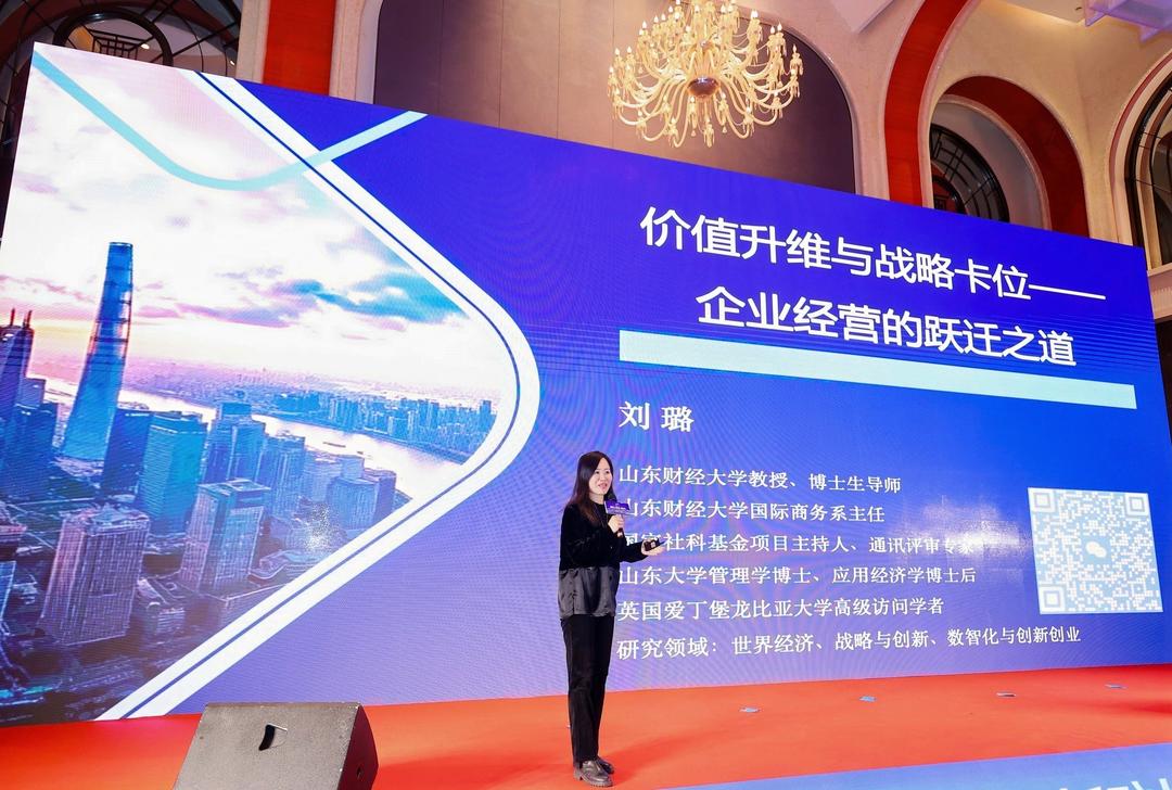 本次主题演讲由山东财经大学教授、博士生导师刘璐主讲。她指出,在当前数智化浪潮与经济结构转型的双重背景下,企业若想跳出同质化竞争、实现可持续增长,必须进行“价值升维”与“战略卡位”。演讲中,刘璐教授以Porter价值链理论为基础,阐释了从线性流程到数智化全链路协同的演进路径。