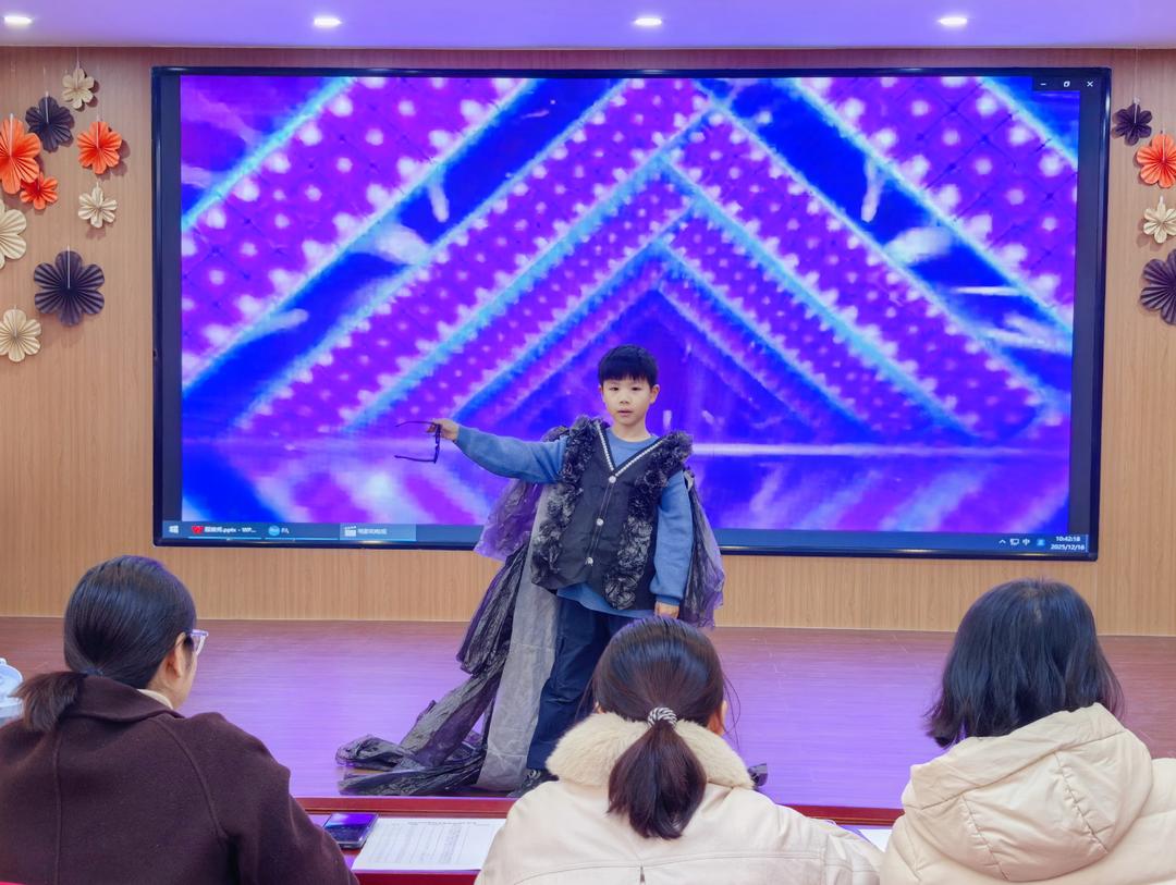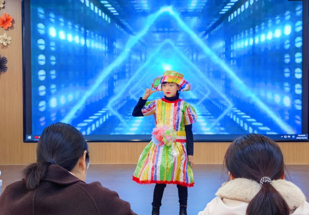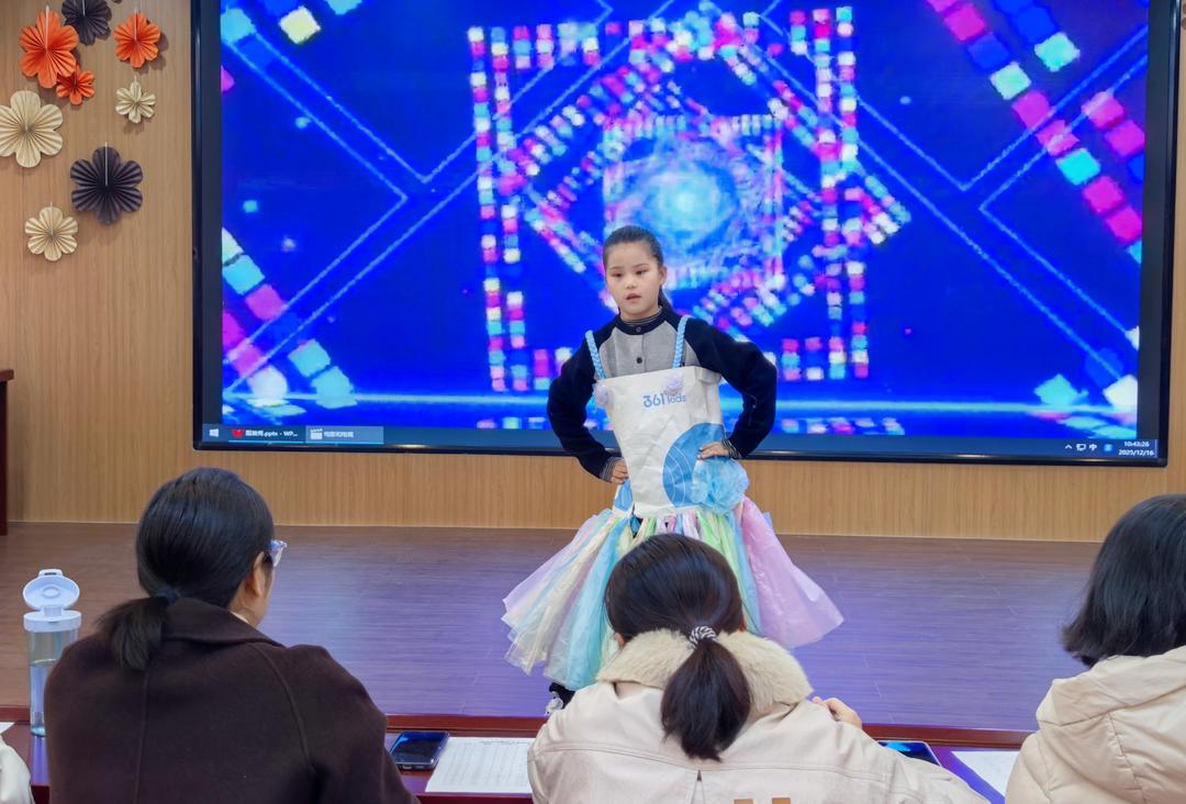 活动现场热闹非凡,伴随着动感的音乐,同学们身着自制环保时装自信满满地踏上舞台。废旧报纸剪裁成的飘逸长裙、塑料瓶串成的闪亮铠甲、快递纸箱拼接的酷炫披风、旧T恤改造的时尚背心……一件件作品构思巧妙、创意十足,将环保理念与艺术美感完美融合。同学们们迈着灵动的步伐,在台上尽情展示风采,稚嫩的脸庞上洋溢着骄傲与喜悦,台下掌声、欢呼声此起彼伏。