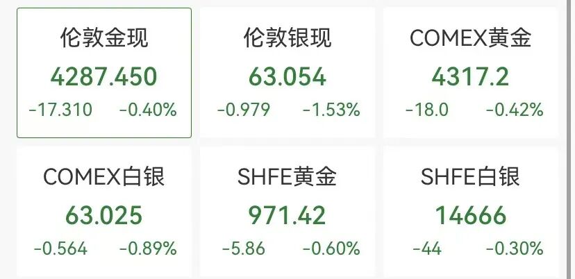 国际贵金属方面,黄金白银冲高跳水,COMEX黄金期货目前在4310美元/盎司附近震荡调整,白银大跌超1%。