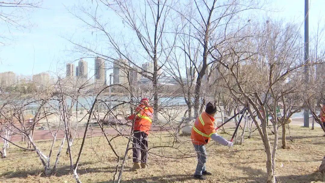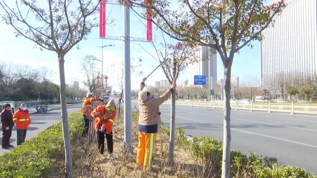 济宁东城建设集团有限责任公司绿化环卫部工作人员宋广建介绍:“我们开展大规模‘灌封冻水’作业,增强土壤保温保湿能力;对行道树和绿植科学修剪,根据树种特性、树势及周边环境统筹规划。”
