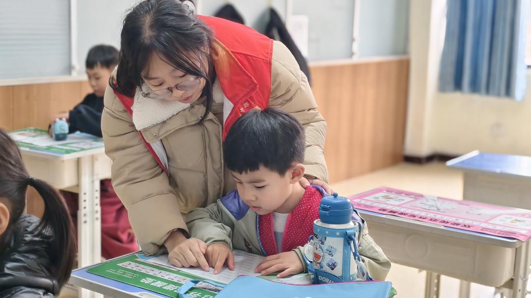 活动现场,书法老师从握笔姿势、坐姿规范教起,用通俗生动的语言拆解 “横、竖、撇、捺” 等基本笔画的书写要领,随后示范简单汉字的结构搭配。孩子们手握毛笔,在宣纸上认真临摹,一笔一画尽显专注。社区工作人员在旁贴心协助,为孩子们添墨、纠正姿势,耐心解答书写疑问,现场墨香四溢、氛围温馨。