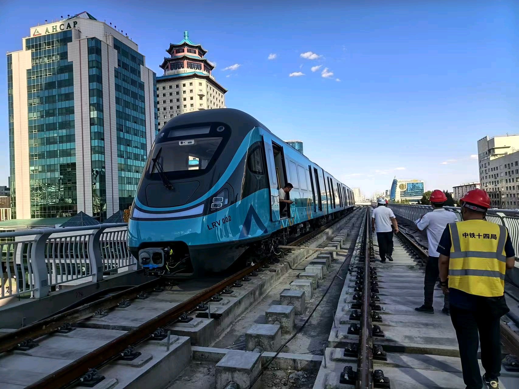 在中亚与南太平洋地区,合作之路越走越宽。哈萨克斯坦阿斯塔纳市轻轨一期项目作为中亚首条采用中国标准的无人驾驶轨道交通项目,中铁十四局创新采用“散铺法”施工,创下单日整体道床浇筑纪录,2025年7月圆满完成轨枕预制并实现“短轨通”。承建的哈萨克斯坦KB国家级公路改造项目两个标段任务,于2025年10月投入试运行。