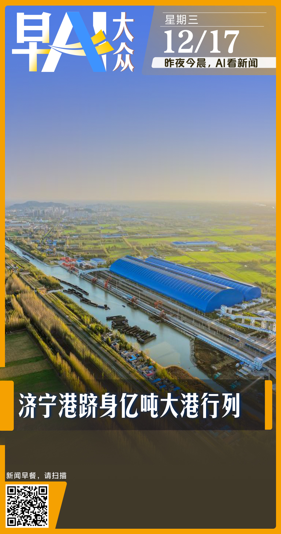 早AI大众|中央财办:扩大内需是明年首位任务;济宁港跻身亿吨大港行列