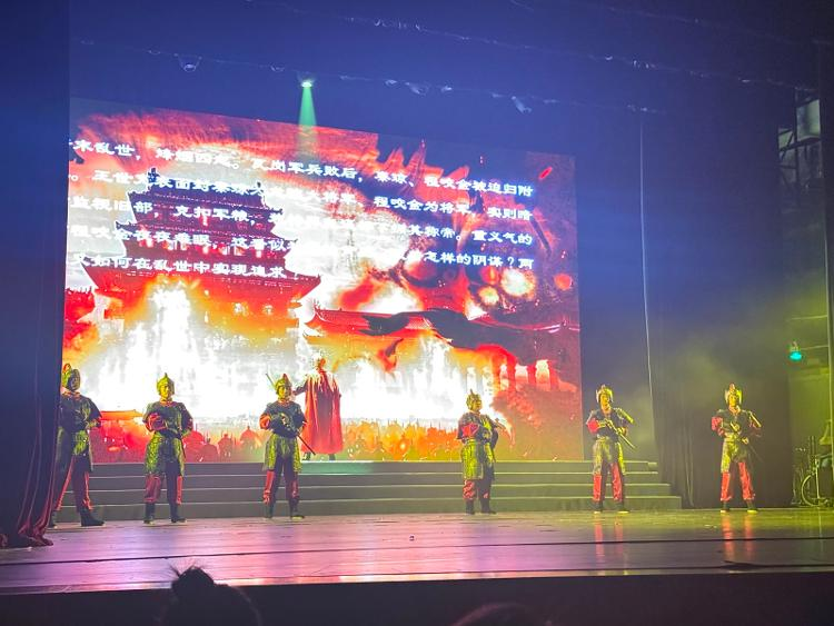 《城·光》是济南市深化思政教育改革、拓展育人路径的重要实践。该剧立足济南深厚的历史文化,以“弘扬爱国主义精神、展现新时代青年担当”为主线,通过舞蹈、情景剧、诗画剧等多种艺术形式,融合红色基因与城市记忆,呈现出一幅跨越时空的爱国长卷。演出由济南艺术学校200余名师生担纲,涵盖《追光耀城》《义烈双雄》《剑胆词魂》《齐鲁烽骨》《千里寻党》《风华共鸣》等丰富篇章,生动刻画了不同历史时期济南儿女的家国情怀与奋斗足迹。剧目以情景表演为核心,有机融入音乐、舞蹈、叙事等舞台语言,并充分运用声光电现代技术,营造沉浸式观演体验。多媒体投影与演员表演交织,强化视觉感染力;音乐与灯光随情节起伏,艺术化展现理想信念的磅礴力量。演出既厚重深沉,又充满时代气息,情节真切、情感丰沛,极具思想启发性与艺术感染力。