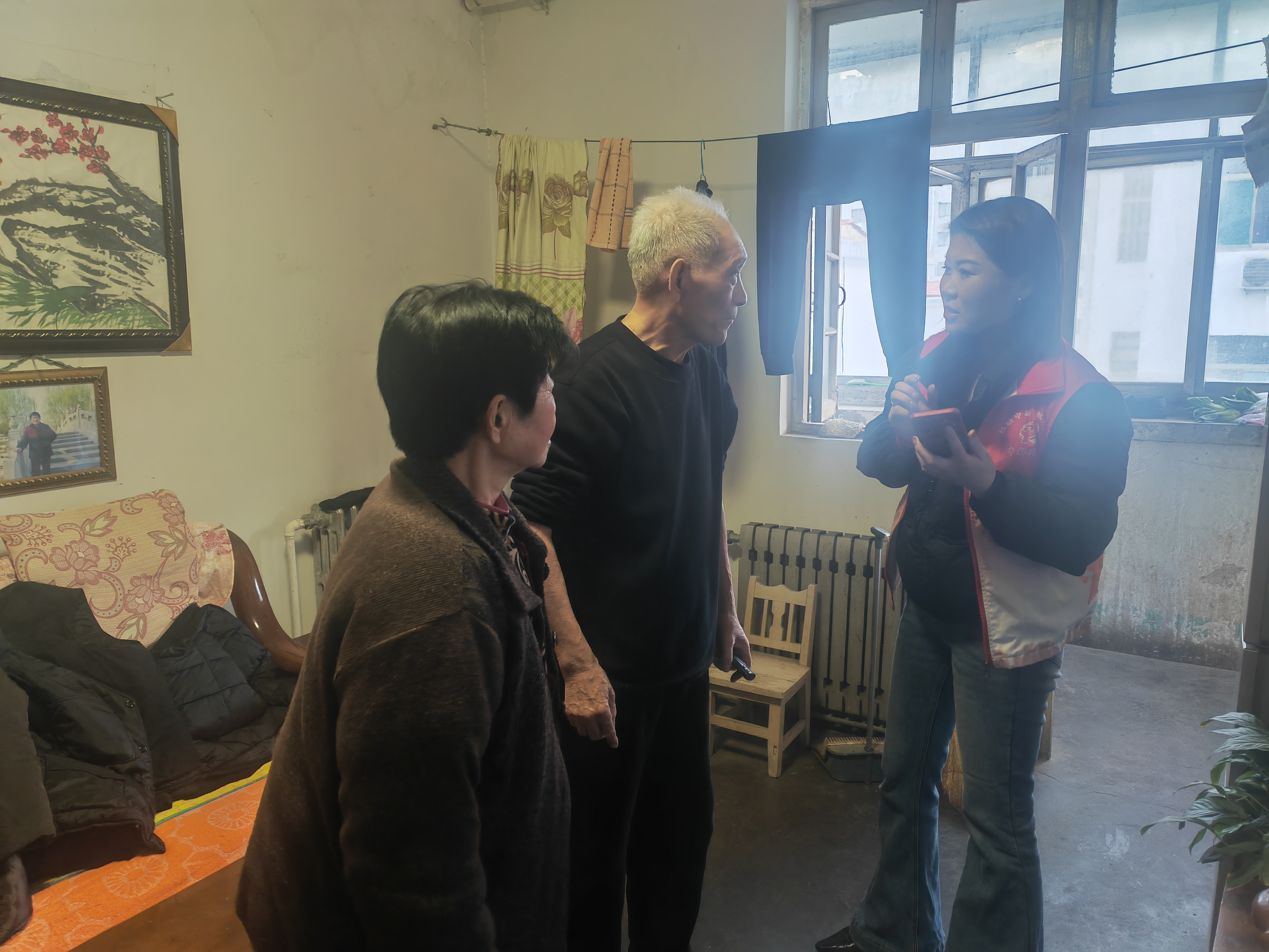 活动中,社区工作人员每到一户,都与老人亲切拉家常,细致询问其近期身体健康状况、生活需求,耐心倾听他们的心声;同时重点检查室内取暖设备运行情况,提醒老人注意用电、用火安全,避免冬季取暖隐患。