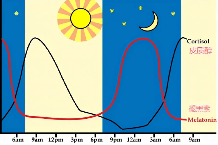 综合来看,左右人体睡眠节律的激素主要有两种:一是褪黑素,另一种就是皮质醇。