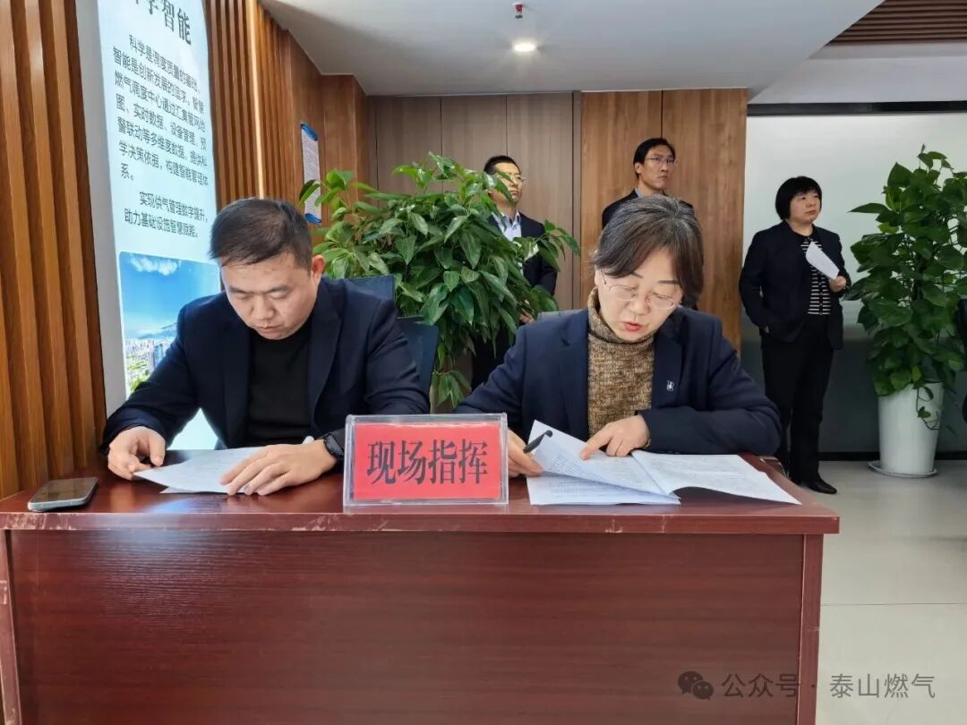 近日,泰山燃气集团有限公司组织开展今冬明春采暖季安全保供桌面演练,通过模拟应急场景推演,检验集团各部门、各用气单位及输气场站在应急状况下的协同应对能力。泰山燃气集团主要负责人陈世峰全程参与指挥,相关领导班子成员、调度营销部、道朗输配经营分公司(道朗输气门站)、泰山港华燃气调度中心、东平泰燃公司调度中心、肥城泰燃公司调度中心、岱东泰燃公司调度中心(范镇输气门站)等单位协同参与。