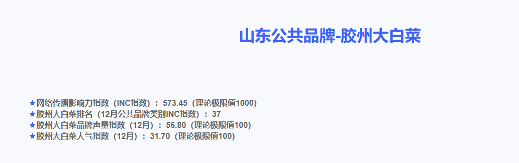 “酒香也怕巷子深”,解决了“品控”与“供给”问题后,品牌传播成为胶州大白菜突破天花板的关键。壹点智库品牌大数据显示,消费者对胶州大白菜的高品质认知仍较模糊,品牌溢价能力尚未完全释放,这倒逼产业从“产品思维”转向“品牌思维”,构建多维度传播矩阵。