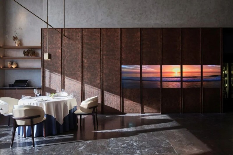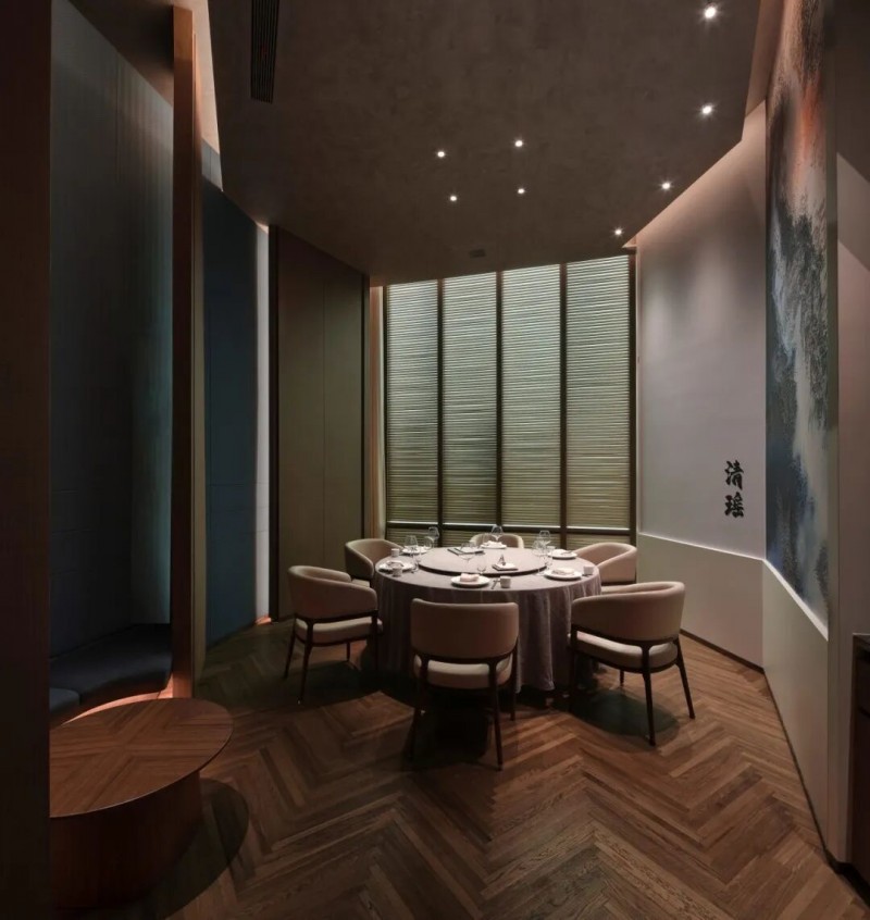餐厅由斩获过美国 IDA 设计大奖、金堂奖等国内外殊荣的山隐设计集团郭明先生操刀,以 “山之雄浑,海之润泽”为核心立意,将胶东海岸的自然气韵注入济南CBD 的现代建筑中,在“厨艺与空间互文”中,共同诠释鲁菜精髓与海洋文化。