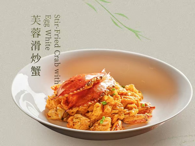 传承自经典鲁菜“芙蓉炒蟹”的雅致形态,【芙蓉滑炒蟹】创新采用数倍蟹子熬制专属蟹浓汤,以鲁菜独有的浓汤技法提升鲜味浓度。烹饪时摒弃传统油炒,改用“水炒”工艺,将蟹汤与蛋液充分融合,炒出的蛋花如芙蓉般嫩滑,每一口都裹挟着纯粹蟹鲜,堪称“传统鲁菜的现代表达”。