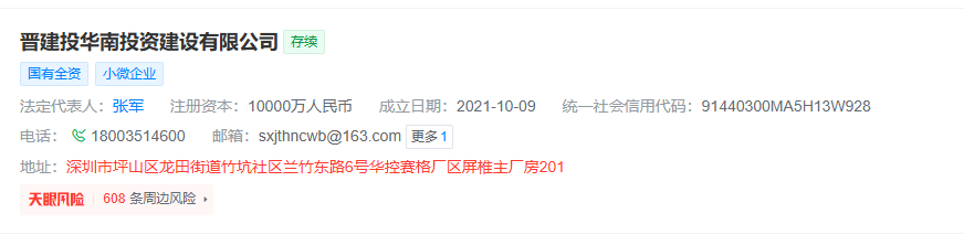 招股书披露的公司注册地址,也暴露出一处值得关注的问题。尚水智能的注册地址为深圳市坪山区龙田街道竹坑社区兰竹东路6号华控赛格厂区屏椎主厂房201,但工商资料显示,该地址同时是晋建投华南投资建设有限公司的工商注册地址。